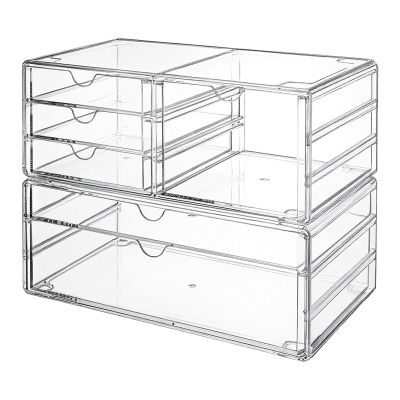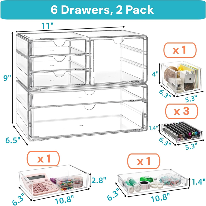 Acrylic Makeup Organizer With 6 Drawers, Stackable Office Desk Storage and Organization, Clear Dustproof Jewelry Drawer Bins for Vanity, Bathroom Countertop, Art Craft Supplies