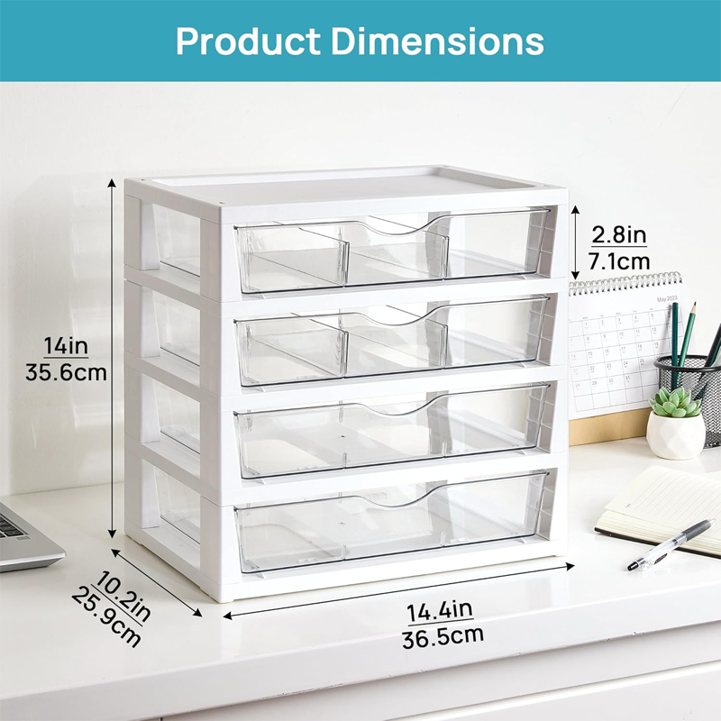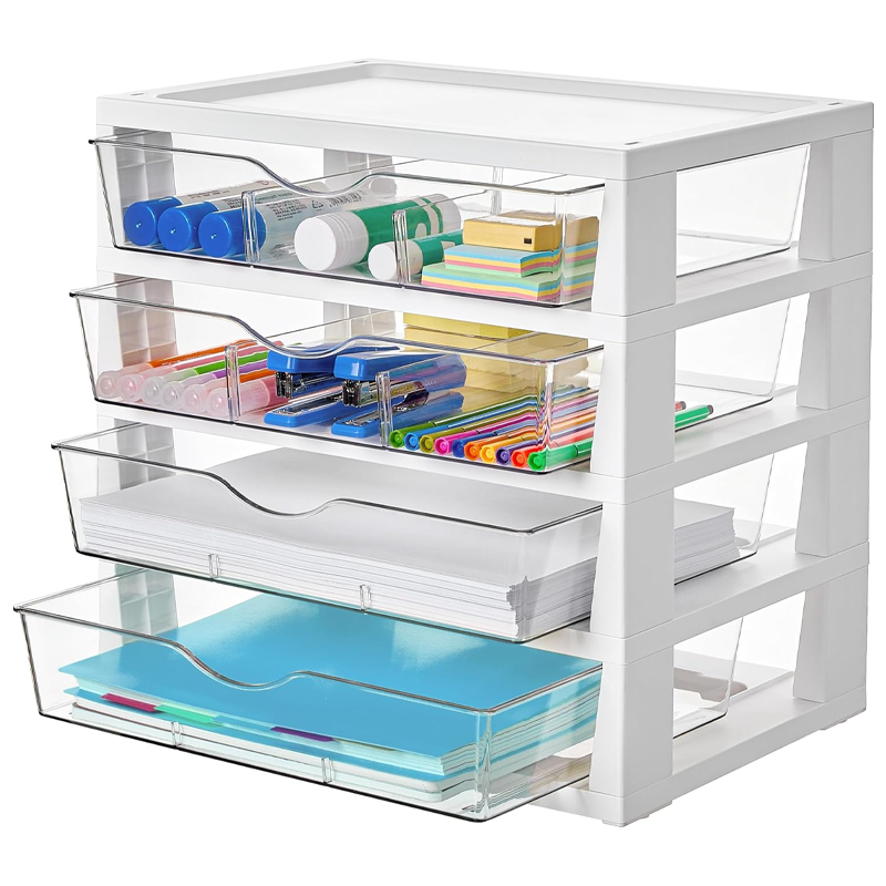 Clear Desk Organizer, 4-Tier Assemble Desktop File Organizer with Drawers, Office Desk Organization for Office Supplies