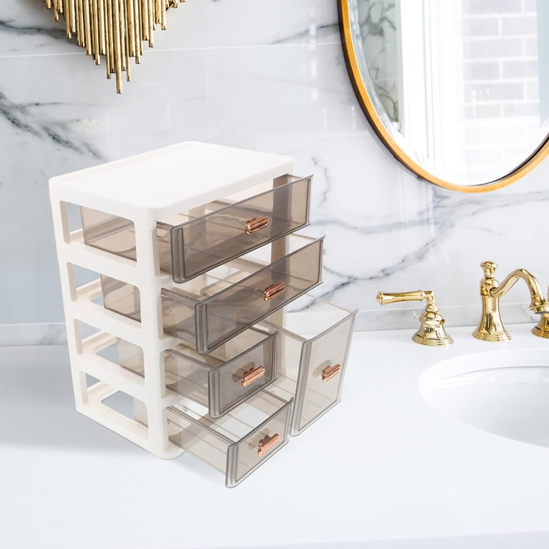 • Storage Cabinet Drawers Plastic Desktop Organizer Makeup Vanity Organizer Desk Countertop Storage Unit